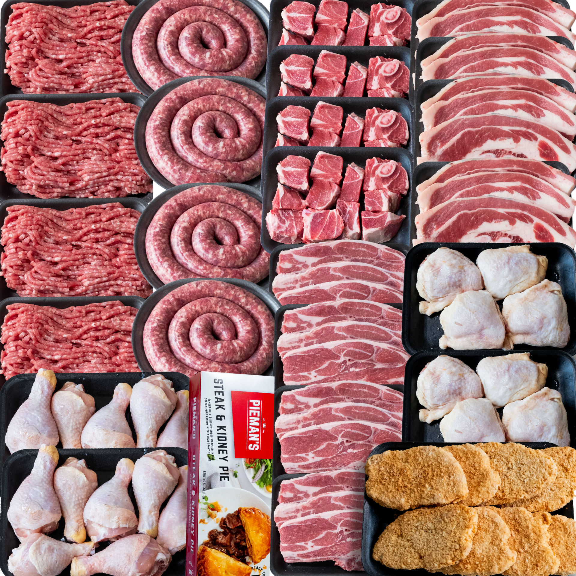 A curated selection of premium meats designed for celebration and convenience. From succulent Boerewors for the braai to high-quality Mince and ready-to-cook chicken cuts, this hamper is your stress-free solution for holiday gatherings. Get 16kg of variety, including a bonus Steak & Kidney Pie, perfect for quick and easy meals or an elegant Christmas dinner.